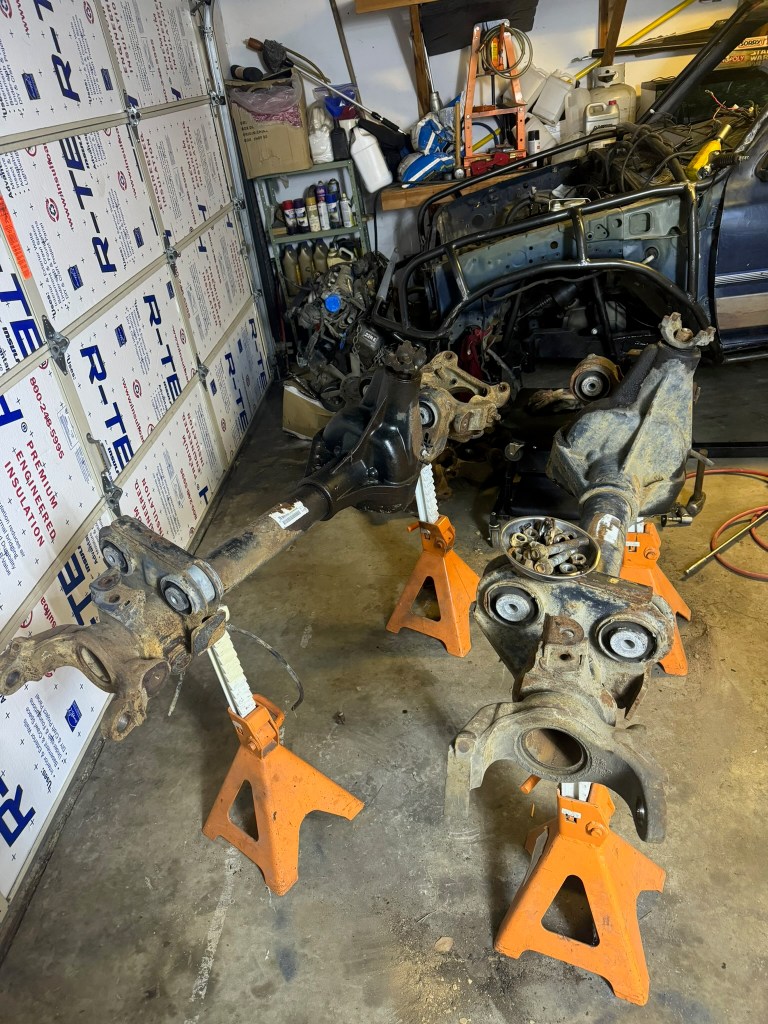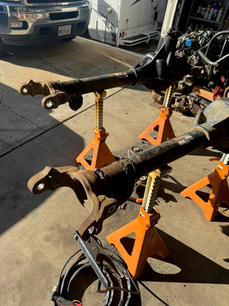 These are pictures of the chassis and axels, at the very beginning of the build. Anthony @ DF Fabrication engineered and fabricated the chassis and welded most of the chassis together so we could bring it home. There were a lot more things to weld onto the chassis, but I wanted to weld them in myself. In hindsight, I wish I’d have asked Anthony to weld the bracketry due to him having everything on the jig.